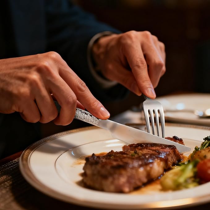 - 【High-gloss mirror finish】 Through multiple rounds of meticulous polishing, this modern silverware sets achieves a long-lasting, mirror-like shine with a perfectly smooth, burr-free surface. The stylish hammered texture effortlessly complements a variety of table settings, adding an elegant touch that makes every meal feel like a high-end dining experience. Ideal as a gift for weddings, housewarmings, or Mother's Day.