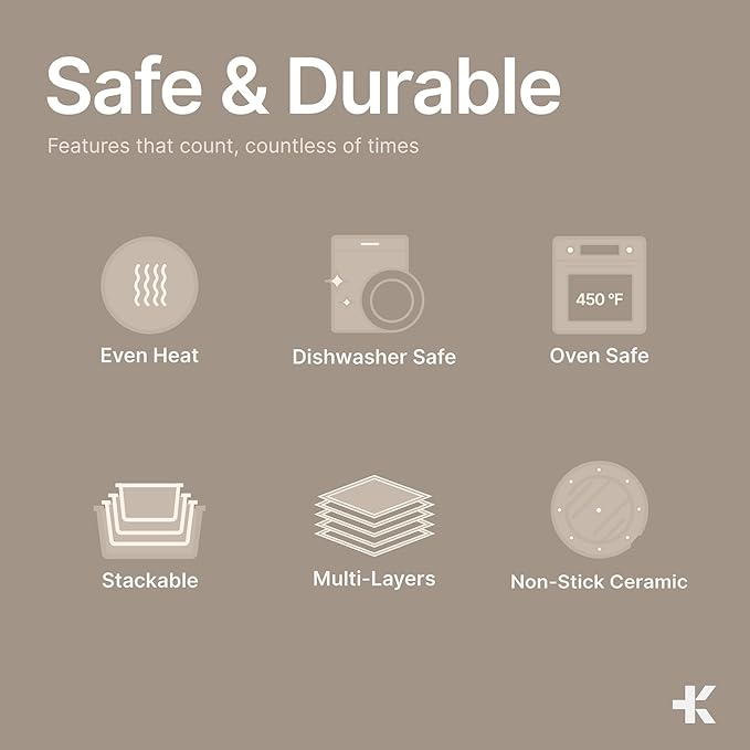 - STRONG RIVETED HANDLES - Built with strong stainless steel, the handles are securely riveted for a firm hold. Designed for more stability when lifting, but as they will heat during cooking, we recommend using oven mitts or gloves for safe handling.