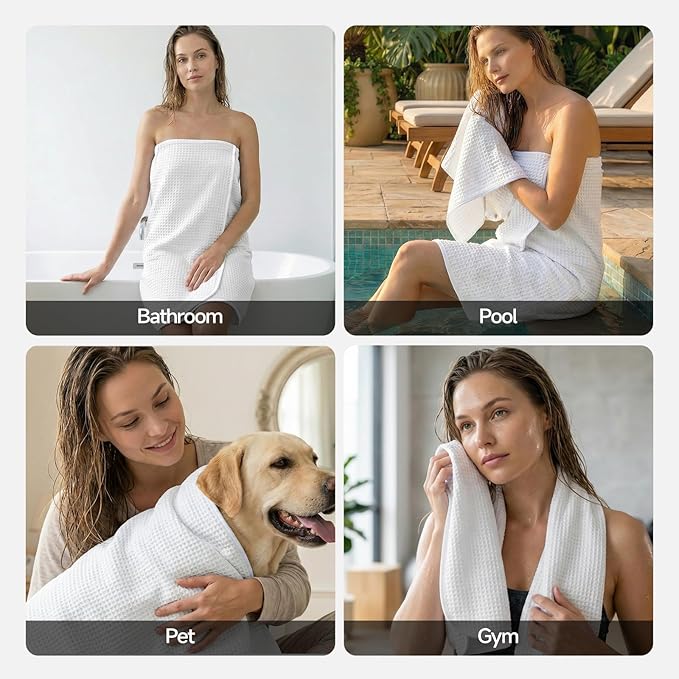 - 【Oversized Coverage 8 Piece Set】 Includes eight large 31x62 inch waffle towels meeting family daily replacement needs while spacious waffle weave bath towels provide complete coverage and warm wrapping from head to toe