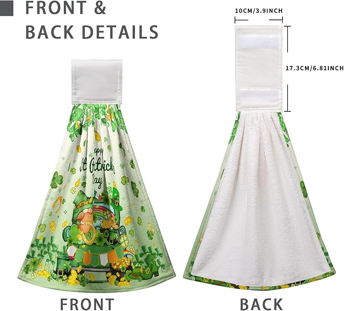 - Size and Material: The size of our St Patricks Day hanging kitchen towel is 17 x 12 inch. Made of premium polyester, these spring green tie towels are strong absorbent, soft, and not easy to fade