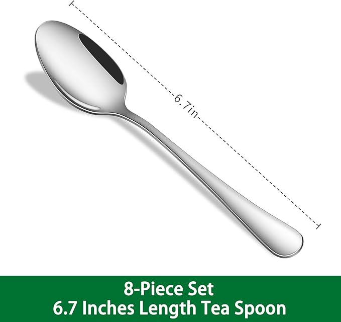 8-Piece 6.7 Inches Stainless Steel Tea Spoon,Durable Dishwasher Safe Teaspoons,Silverware Dessert Spoons For Kitchen,Small Spoons For Restaurant,Hotel