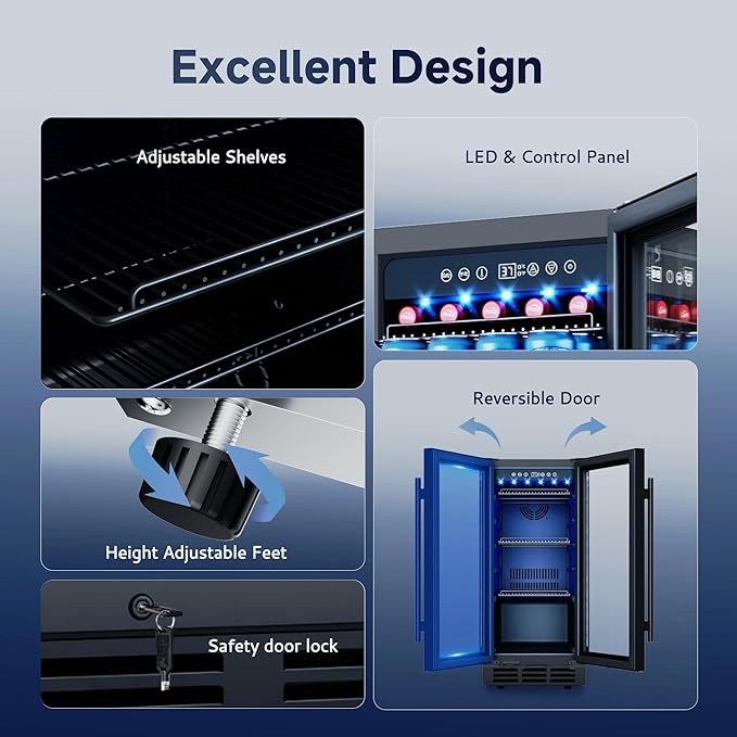 - Smart Temperature Control & Illumination: Equipped with a digital touch panel for precise climate management, plus power-off memory to automatically resume your settings after any interruption. The double-pane glass door includes an auto-sensing blue LED light, with options for continuous illumination.