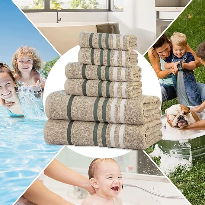 - INGREDIENTS: The set includes 2 pieces of washcloths measuring 12 x 12 inches, 2 pieces of towels measuring 16 x 28 inches and 2 pieces of bath towels measuring 27 x 54 inches.