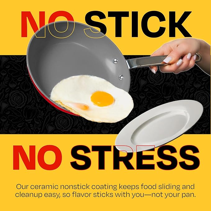 - NO STICK, NO STRESS: No more stuck on messes, just smooth and easy release with every stir, flip, and pour. This nonstick surface delivers epic food release with less oil or butter. Flavor should stick with you, not your pan.
