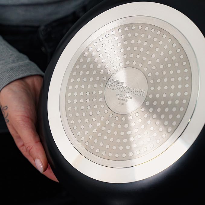 - HEALTHY COOKING, FLAVORTOWN STYLE: Cook with confidence using our nonstick frying pan set made without intentionally added PFAS, PTFE, PFOA, lead, or cadmium. These ceramic frying pans bring the heat without the harsh stuff for cleaner & greener cooking.
