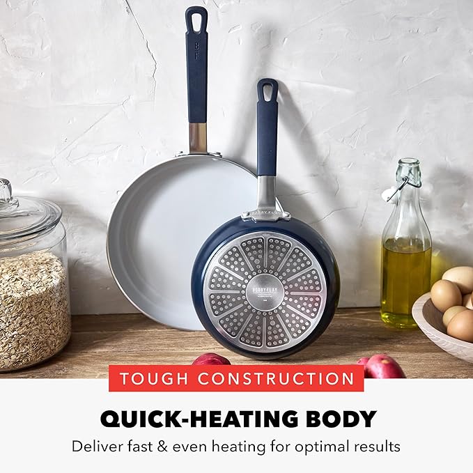 GreenPan x Bobby Flay 2 Piece- 8” and 10” Nonstick Frying Pan Skillet Set, PFAS-Free Diamond Ceramic, Induction Suitable, Stay-Cool Silicone Handle, Easy Clean Dishwasher & Oven Safe, Oxford Blue