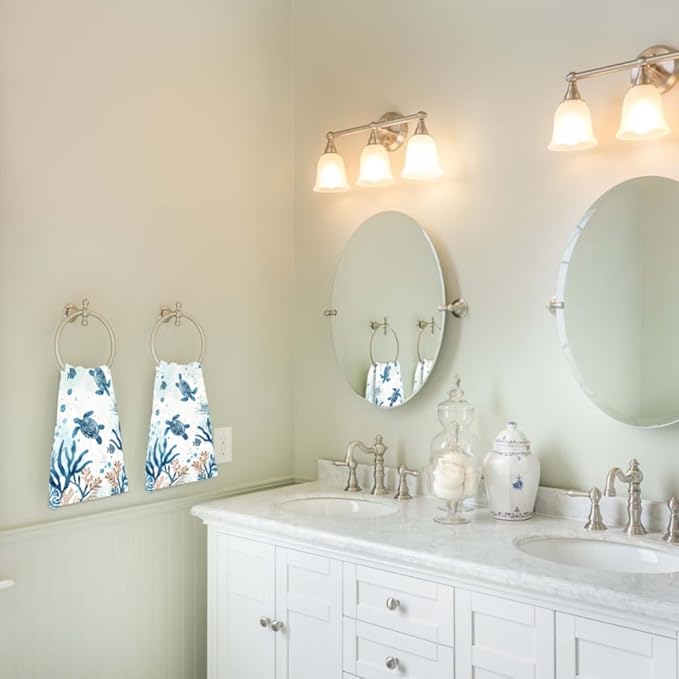 Sea Turtle Hand Towels Bundle 4 Packs Ocean Beach Hand Towels Decorative Coastal Hanging Kitchen Towels for Home Bathroom Spa Dish Washcloth Soft Tropical Coastal Fingertip Towels