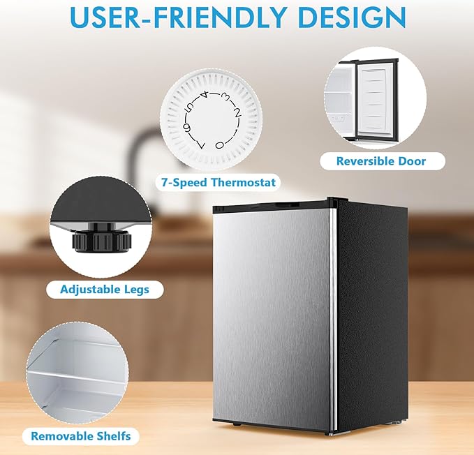 - Security Certification: Our Compact fridge has obtained ETL certification, please use it with confidence.