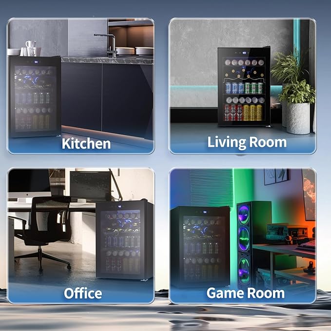 - NO VIBRATION and QUIET: Equipped with an advanced cooling system that will keep your wine at the right temperature without making a noise. With no disturbance to its natural occurring sediments. Equipped with Movable Black Shelves, Glass Door and Adjustable Leveling Legs.It is convenient for customers to move the position of the beverage cabinet, and they can drink cool wine anywhere.