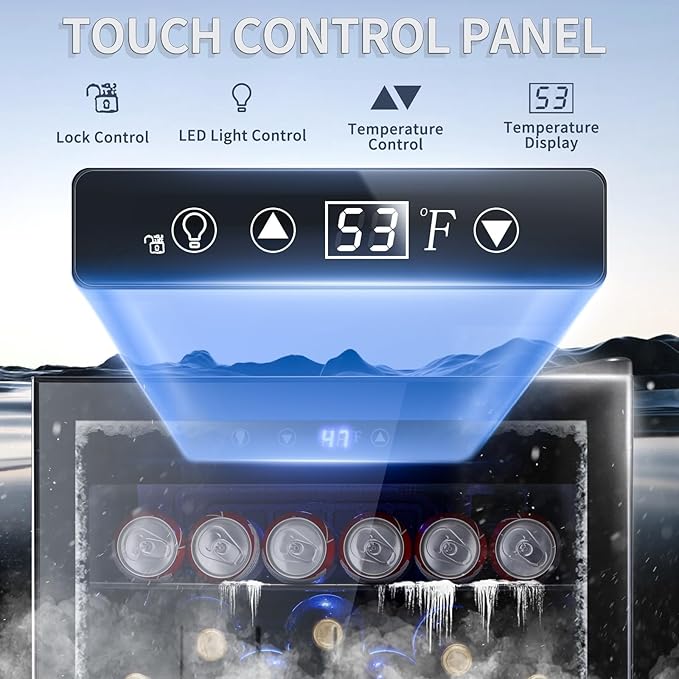 - GREAT CAPACITY : Antarctic Star Wine Cooler features an elegant see-through, left hinge glass front door with a stainless steel frame for you to view your wine at a glance. With its reinforced glass door with air tight seal and help to maintain an ideal humidity level, this Wine Cooler gives you a compact and modern design.Blue soft LED interior lighting not only beautifully showcases the wine but also won’t damage the wine.
