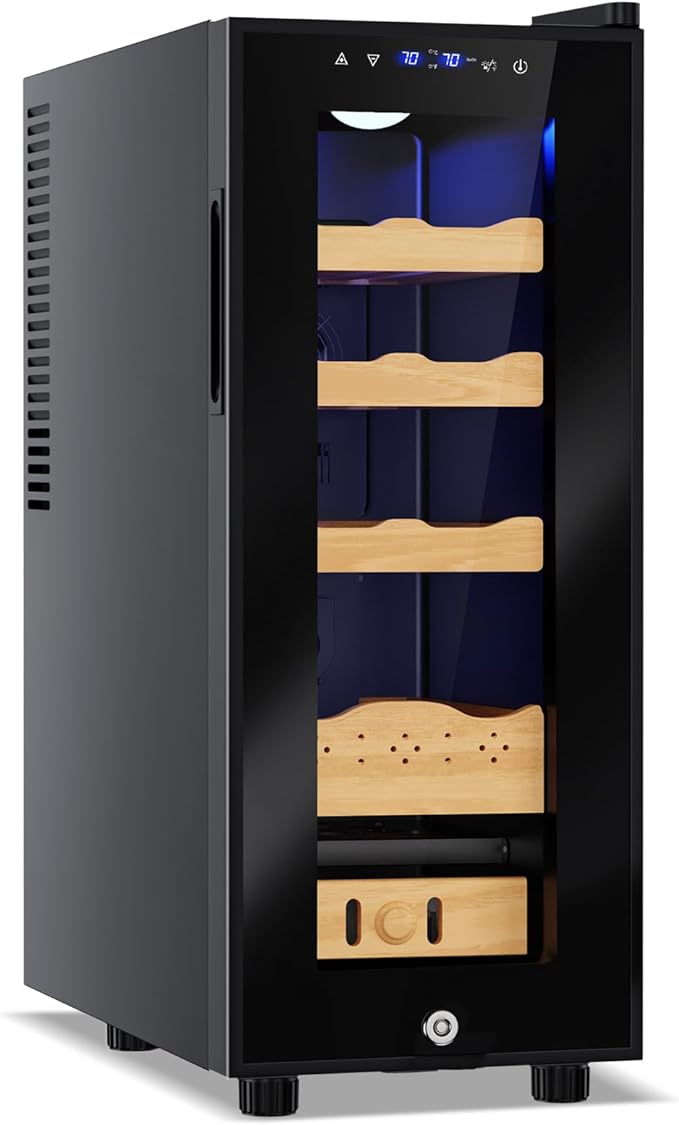 Electric Humidor-35L Cooling & Heating Humidor Smart Touch Control Humidity & Temp Humidors wtih Spanish Cedar Wood Tray, Digital Display, Safety Lock, Desktop Gift for Men