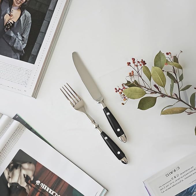 - FASHIONABLE APPEARANCE - Highly mirror-polished appearance keeps the silverware always shiny, Electroplated rivet handles make this silver tableware elegant and chic, comfortable to hold, and full color does not fade. The edge of the tableware is smooth without burrs, and the weld of each knife and fork is flawless and strong.