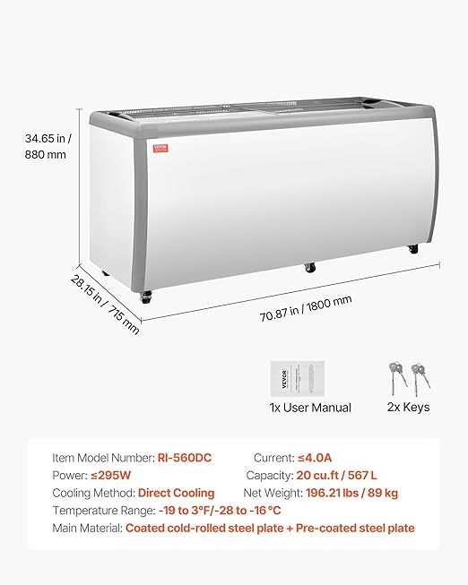 - Large Capacity: The ice cream freezer offers 20 cu.ft / 567 L of storage with top display top tub racks plus extra bottom space, allowing you to keep a large amount of popular ice cream or other frozen treats